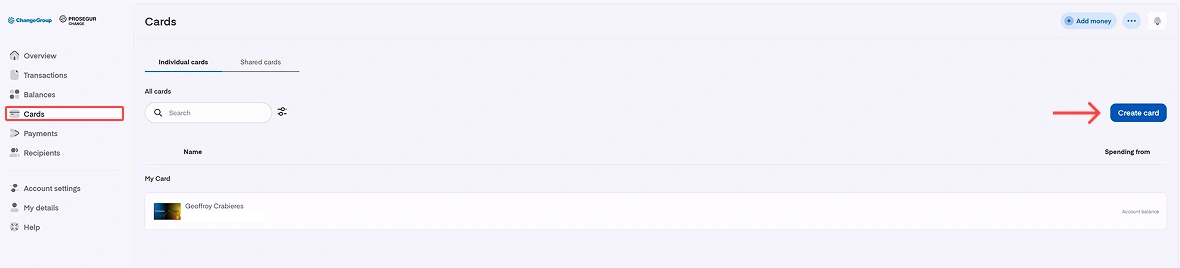 - Gå til platformen og klik på «Kort», derefter på «Opret kort».