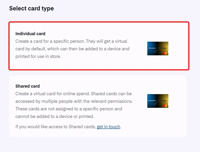 - Vælg «Individuelt kort».